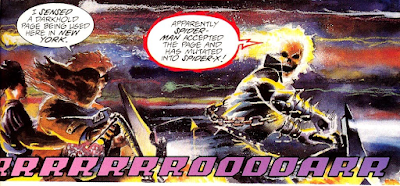 Similarly, the artwork bounces around from the fantastic to the mediocre during each chapter transition. Todd himself handles the bookend pieces that focus on Spider-Man, and his work is extremely simplistic. I get the idea of having a non-horror artist handle Spider-Man's pages in order to contrast the difference between him and the Midnight Sons, but getting an actual traditional artist would have been much more preferable. The Spirits of Vengeance and Darkhold segments are the best looking, with Javier Saltares finally returning to draw Ghost Rider after two years away. He may not have Mark Texeira doing the finishes in this issue, but Saltares still draws a fantastic Ghost Rider and Blaze. The Darkhold chapter by Ken Meyer, Jr. is absolutely breathtaking to look at, but that's also why it sticks out like a sore thumb in the issue. Meyer's painted artwork is magnificent, and it makes the rest of the issue (outside of Saltares' pages) look inferior in comparison. Dougie Braithwaite, an artist I really liked for his work on the Punisher around this time, does a good job on his Morbius chapter before bailing five pages from the end. He's bailed out by Vince Giarrano, another jarring artistic transition from what's come before. The weakest art in the issue, outside of Todd's, comes from John Czop during the Nightstalkers chapter (seriously, the Nightstalkers had the worst segment by far). Czop just isn't in the same league as his contemporaries here, and it stands out in the complete opposite way from Meyers'.